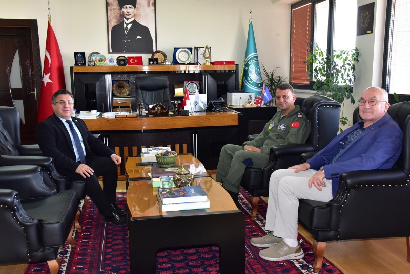 Rektör Yardımcısı Prof. Dr. Cevdet Avcıkurt’un da yer aldığı ziyarette Rektör Prof. Dr. Yücel Oğurlu konuğu Garnizon ve 9’uncu Ana Jet Üs Komutanı Hv. Plt. Tuğg. Gökhan Gürakar’a ziyareti dolayısıyla teşekkür etti.