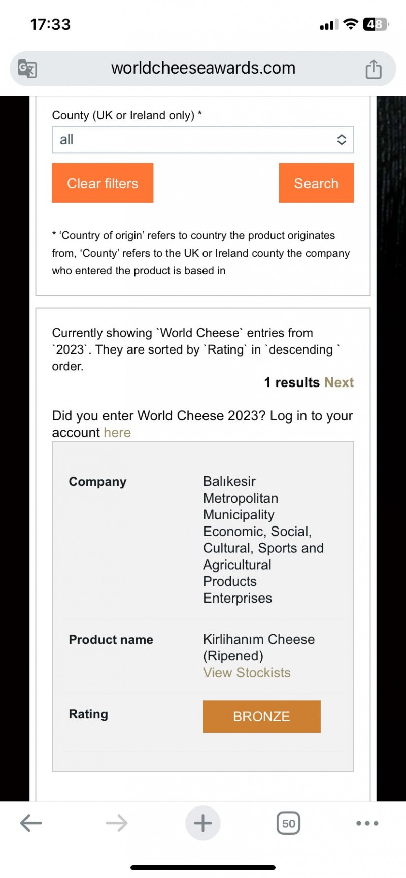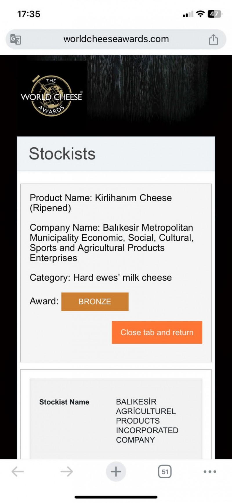 43 ülkeden 4502 peynirin katıldığı dünyanın en büyük peynir yarışmasında Balıkesir’in “Kirli Hanım Peyniri”nin Cumhuriyeti’nin 100.yılında bronz madalya alması büyük mutluluk ve gurur yaşattı.
