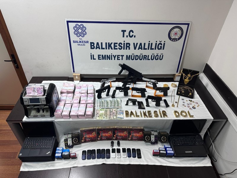 Balıkesir Asayiş Şube Müdürlüğü Dolandırıcılık Büro Amirliği ekiplerince, 28 Ekim 2025 sabahı saat 06.00’da Balıkesir Cumhuriyet Başsavcılığı talimatıyla İstanbul ve Siirt’te 56 adrese eş zamanlı operasyon düzenlendi. 125 ekip ve 320 personelin katıldığı operasyonda 54 şüpheli gözaltına alındı. Şüphelilerin ev, iş yeri ve araçlarında yapılan aramalarda 1 uzun namlulu otomatik tabanca, 8 ruhsatsız tabanca, 1 kurusıkı tabanca, 500 adet 9 mm fişek, 2 milyon TL nakit para, 2.625 dolar, 50 euro, 110 Rus rublesi, 105 gram altın, çok sayıda ziynet eşyası, 75 akıllı telefon, 95 tuşlu telefon, 210 sim kart, 110 dizüstü bilgisayar, 5 harddisk, 1 kamera kayıt cihazı, 2 para sayma makinesi ve çok sayıda bitkisel ilaç ele geçirildi.