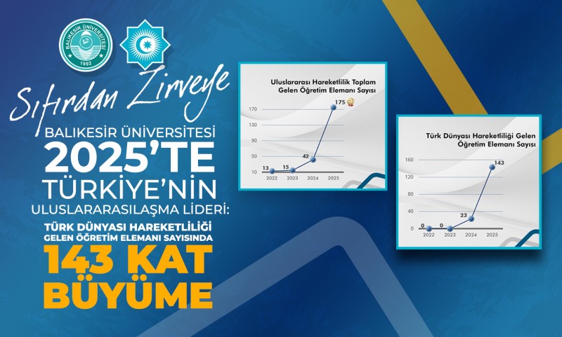 Balıkesir Üniversitesi, değişim programları kapsamında 2025 yılında 143’ü Türk Dünyası Hareketliliği olmak üzere toplam 175 öğretim elemanı kabul ederek Türkiye birincisi olurken bu alanda tüm üniversiteleri geride bırakarak uluslararası akademik hareketlilikte öncü konumunu pekiştirdi. BAÜN uluslararası hareketlilikte Erasmus dahil toplam gelen öğretim elemanı sayısında da 13 katlık büyüme sağladı.