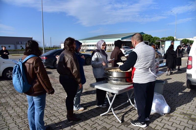 Çağış Yerleşkesinde Fen Edebiyat Fakültesi önünde yapılan pilav hayrına, Balıkesir Üniversitesi Rektörü ve Balıkesir Üniversitesi Vakfı Başkanı Prof. Dr. Yücel Oğurlu, Balıkesir Üniversitesi Vakfı Başkan Vekili Ziyaettin Tan, Vakıf Yönetim Kurulu Üyeleri İlhan Sezginsoy, Hüseyin Bekki, Erten Seymen, Suat Zerengil BAÜN Rektör Yardımcıları Prof. Dr. Cevdet Avcıkurt, Prof. Dr. Murat Doğdubay, Prof. Dr. Fatih Satıl, Vakıf Vakıf Müdürü Hayriye Şahin ile üniversite personeli ve öğrenciler katıldı.