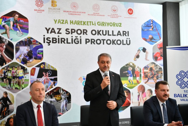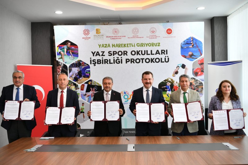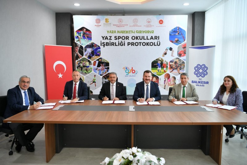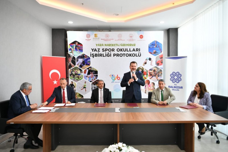 Balıkesir Valiliği öncülüğünde Büyükşehir Belediyesi, Gençlik ve Spor İl Müdürlüğü, İl Milli Eğitim Müdürlüğü, Aile ve Sosyal Hizmetler İl Müdürlüğü ve İl Müftülüğü işbirliğinde “Yaza Hareketli Giriyoruz” sloganıyla gerçekleştirilecek “Yaz Spor Okulları’nın işbirliği protokolü imzalandı.
