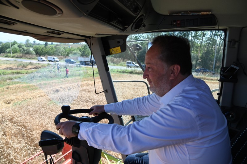 Karesi Belediyesi’nin Şamlı Mahallesi’nde bulunan buğday tarlaları hasat edilmeye başlandı. 62 dönümlük 2 arazide başlayan hasata katılan Karesi Belediye Başkanı Dinçer Orkan, “Hasat ettiğimiz buğdaylardan elde ettiğimiz unları ihtiyaç sahibi vatandaşlarımıza dağıtacağız” dedi.