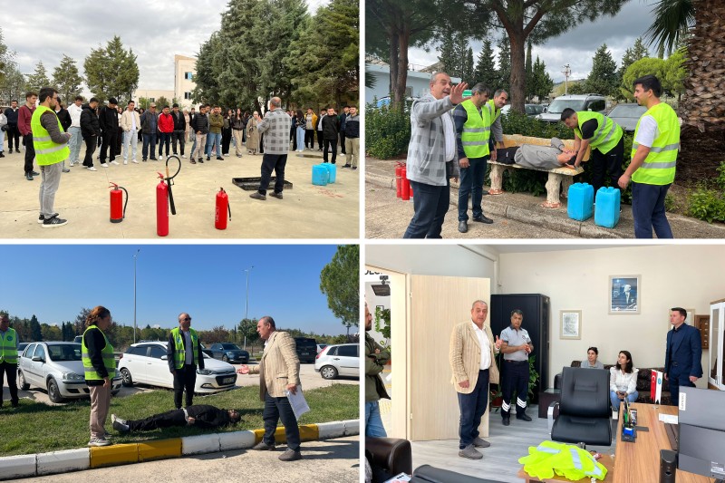 Balıkesir Üniversitesi’nde İş Sağlığı ve Güvenliği Koordinatörlüğü ile Sivil Savunma Uzmanlığı koordinasyonunda, olası afetlere karşı deprem, tahliye ve yangın söndürme tatbikatları gerçekleştiriliyor.