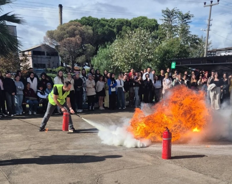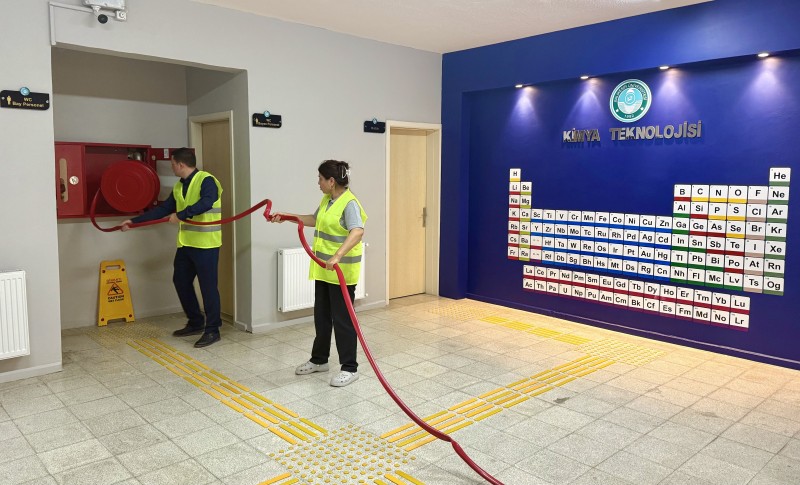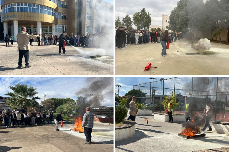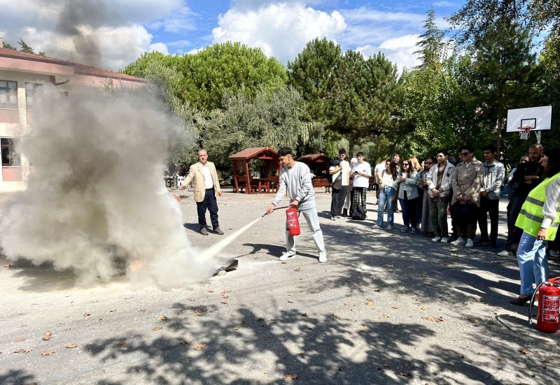 Tatbikatın son bölümünde ise yangın söndürme uygulamasında personel ve öğrenciler, yangına müdahale tekniklerini uygulamalı olarak deneyimliyor. Gerçekçi bir senaryo ile yürütülen tatbikat, afet ve acil durum farkındalığını artırmak amacıyla gerçekleştiriliyor.