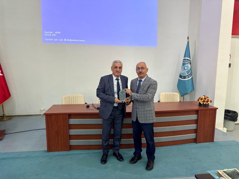 Konferans sonunda Rektör Yardımcısı Prof. Dr. Fatih Satıl tarafından Prof. Dr. Kenan Ziya Taş’a dolayısıyla plaket takdim edildi.
