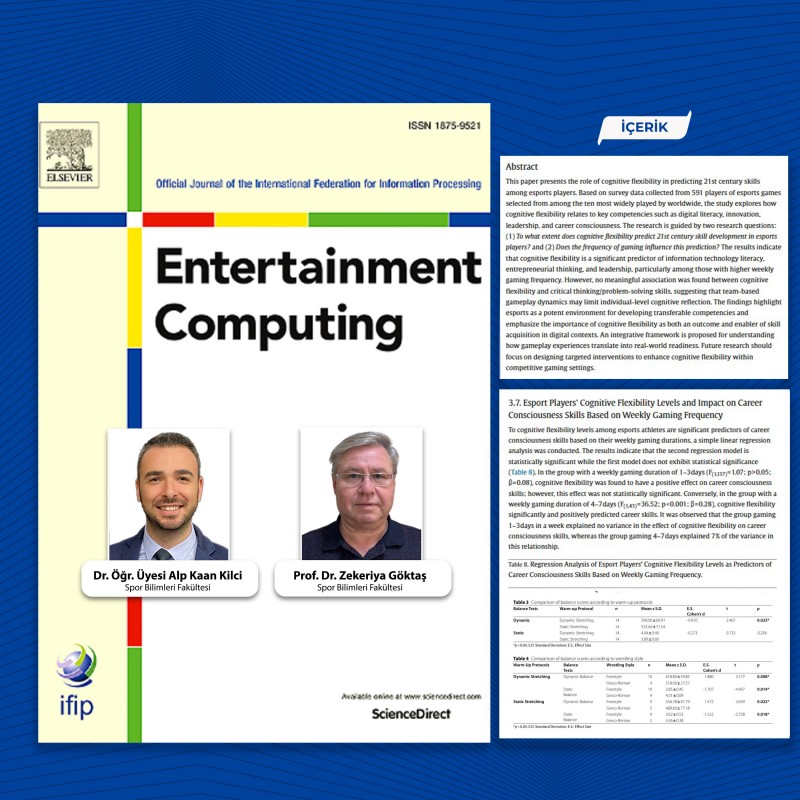 BAÜN akademisyenlerinden Dr. Öğr. Üyesi Alp Kaan Kilci ve Prof. Dr. Zekeriya Göktaş tarafından ortaya koyulan “The Predictive Role of Cognitive Flexibility in 21st Century Skills among Esports Players” başlıklı çalışma, uluslararası dergi sıralamalarında üst dilimlerden olan Q2 ölçeğindeki “Entertainment Computing” dergisinde yayımlandı.