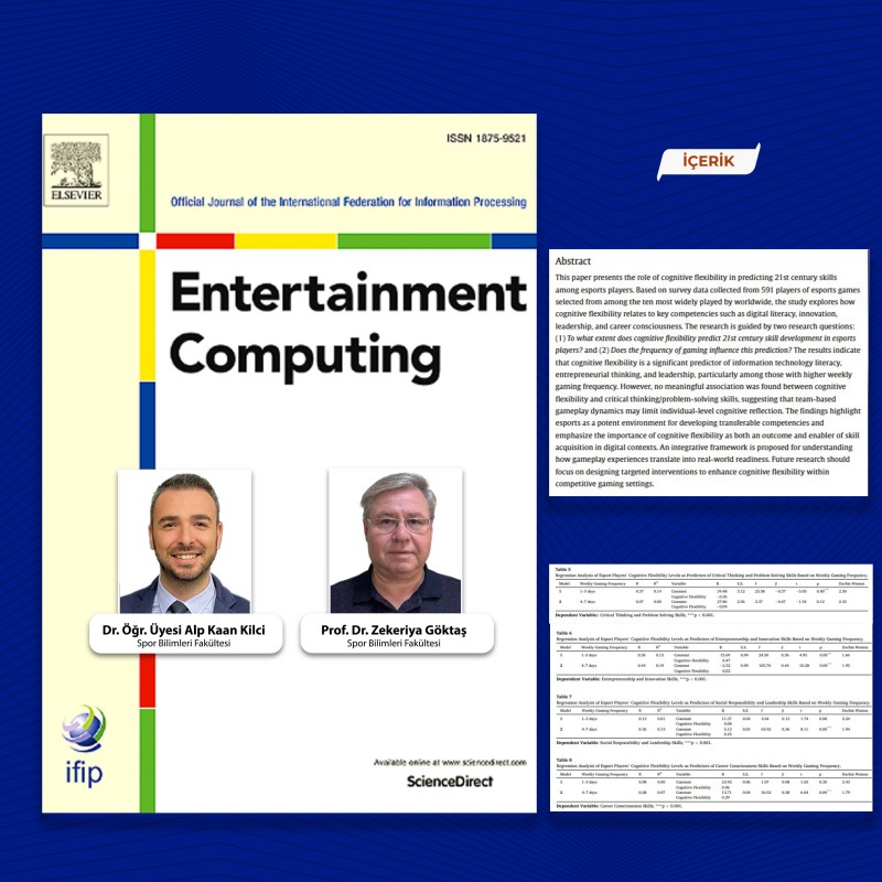 BAÜN akademisyenlerinden Dr. Öğr. Üyesi Alp Kaan Kilci ve Prof. Dr. Zekeriya Göktaş tarafından ortaya koyulan “The Predictive Role of Cognitive Flexibility in 21st Century Skills among Esports Players” başlıklı çalışma, uluslararası dergi sıralamalarında üst dilimlerden olan Q2 ölçeğindeki “Entertainment Computing” dergisinde yayımlandı.