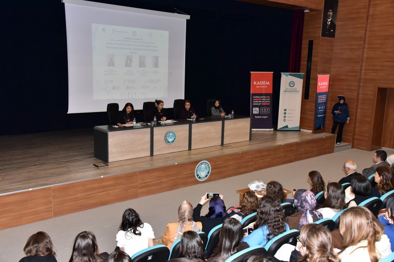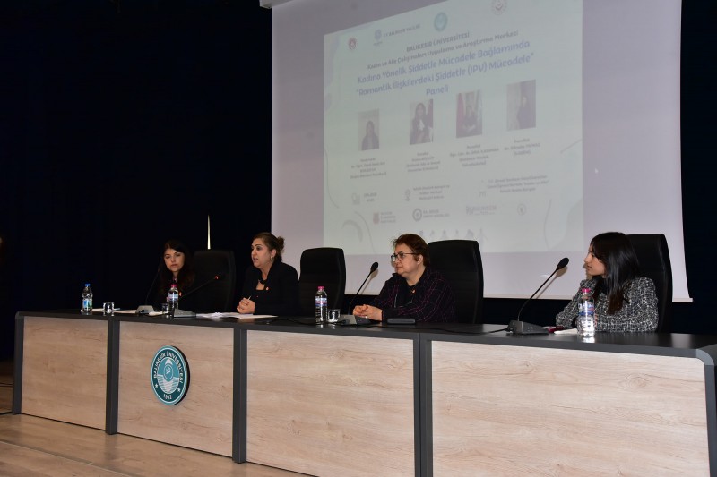 Moderatörlüğünü Sağlık Bilimleri Fakültesinden Dr. Öğr. Üyesi Deniz Aslı Dokuzcan’ın yürüttüğü panel programında ise konuşmacılar Balıkesir Aile ve Sosyal Hizmetler İl Müdürü Emine Böçkün, Balıkesir MYO Öğr. Gör. Av. Dilek Karaman, KADEM Balıkesir Temsilciliğinden Av. Dilruba Yılmaz; kadına yönelik şiddet, romantik ilişkilerde şiddetin önlenmesi, hukuki süreçler ve sosyal hizmet uygulamaları gibi konularda sunumlar gerçekleştirdi.