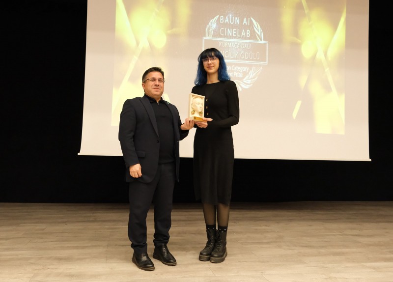 Balıkesir Üniversitesi Güzel Sanatlar Fakültesi tarafından düzenlenen BAUN AI Cinelab – Uluslararası Yapay Zeka Öğrenci Kısa Film Festivali kapsamında Atatürk Kongre ve Kültür Merkezinde gerçekleştirilen ödül töreninde, dereceye giren eserler sahipleriyle buluştu.