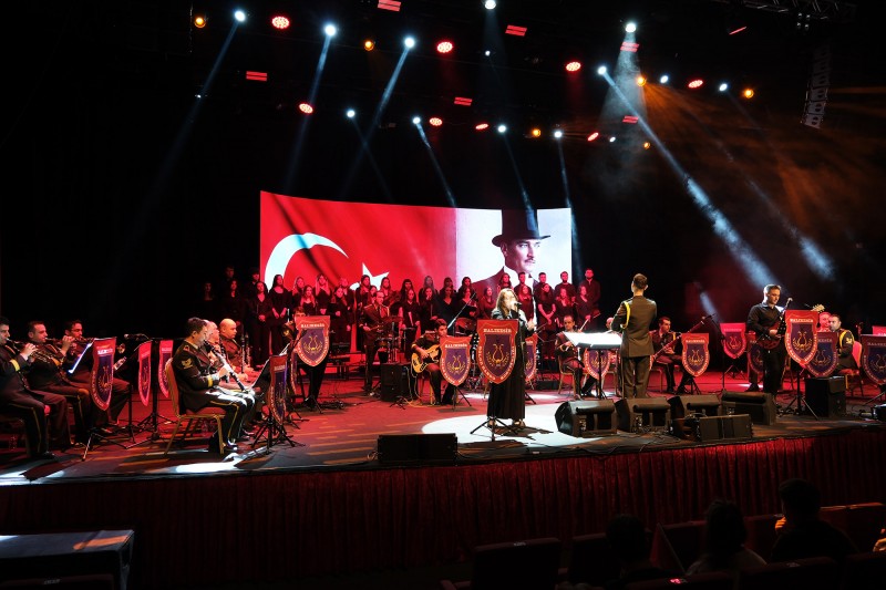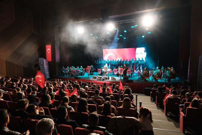 Orkestra Şefliğini Bando Teğmen Salih Doğan Avşar’ın, Koro Şefliğini ise Doç. Dr. Barış Kardeş’in üstlendiği konserde Cumhuriyetimizin 102. Yılı coşkusu ve gururu marşlar ve şarkılarla yaşandı.