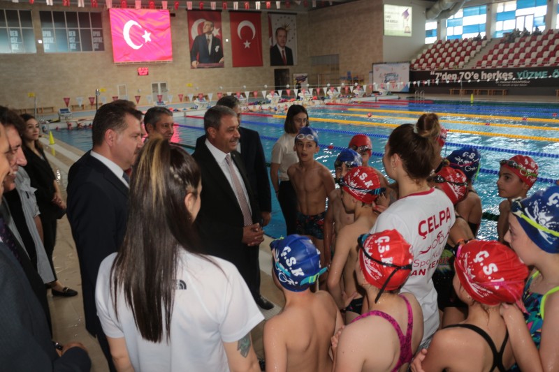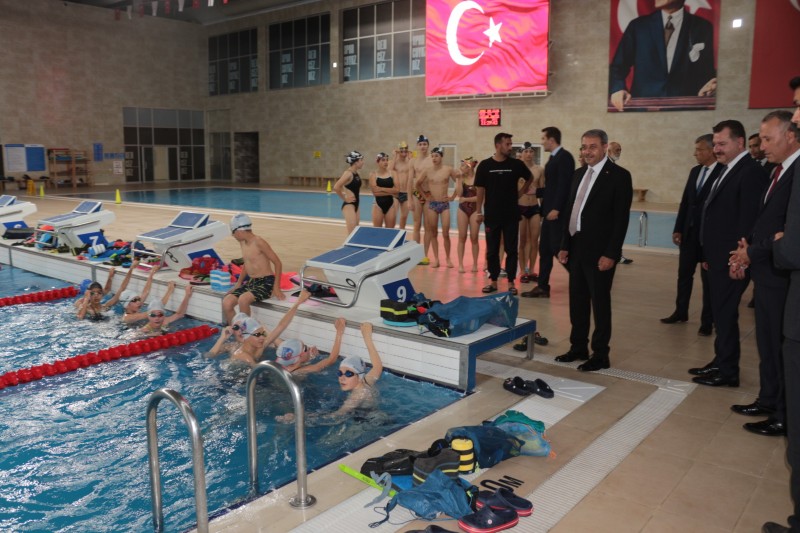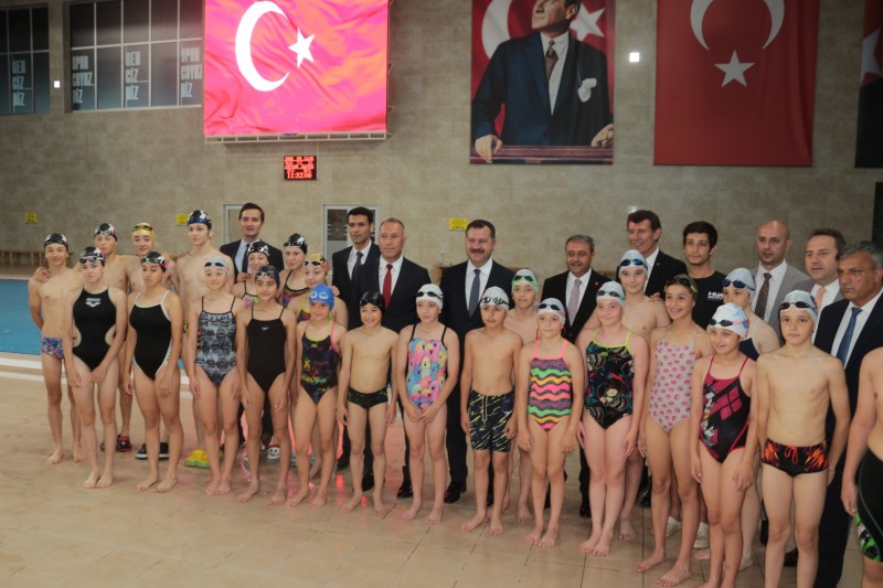 Protokol imza töreninde yapılan konuşmaların ardından Vali Hasan Şıldak, Büyükşehir Belediye Başkanı Yücel Yılmaz, Aile ve Sosyal Politikalar İl Müdürü Hatice Dost, İl Milli Eğitim Müdürü Ali Tatlı ve İl Müftüsü Celal Sürgeç Yaz Spor Okulları kapsamında eğitim verilecek Olimpik Yüzme Havuzu’nda incelemelerde bulundu. Yüzme öğrenin çocuk ve gençlerle bir araya gelen Vali Hasan Şıldak ve beraberindekiler gençlere başarılar diledi. (İHA)