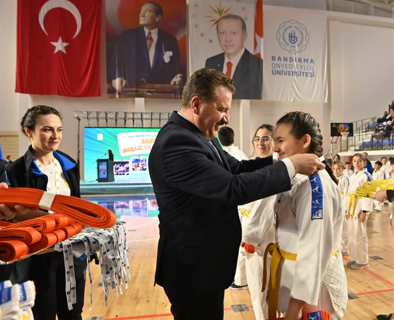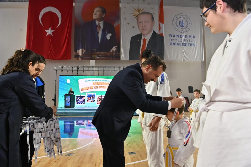Gençlere yönelik gerçekleştirdiği çalışmalar ve şehir genelinde açtığı gençlik merkezleri, Balıkesir Dijital Gençlik Merkezi, kütüphaneler, okullar, skate parklar ile birçok ödüle layık görülen Türkiye’nin En Genç Büyükşehir Belediye Başkanı Yücel Yılmaz, Bandırma’da düzenledikleri Gençlik ve Spor Festivali’nin açılış törenine katıldı. Hizmete aldıkları Bandırma Gençlik Merkezi’nde çocuklara ve gençlere birçok branşta eğitim imkânı sunan Büyükşehir Belediyesi, Bandırma Onyedi Eylül Üniversitesi Kapalı Spor Salonunda düzenledikleri törenle öğrencilerine sertifikalarını teslim etti. Törende Başkan Yücel Yılmaz’a; Bandırma Onyedi Eylül Üniversitesi Rektörü Prof. Dr. Süleyman Özdemir, AK Parti Balıkesir Milletvekili adayları Belgin Uygur, Ali Taylan Öztaylan, Mutlu Aydemir, AK Parti Bandırma İlçe Başkanı Mehmet Doğan eşlik etti. Program; saygı duruşu ve İstiklal Marşı’nın okunmasının ardından 3, 4, 5 ve 6 yaş gruplarının dans gösterileri, Akrobasi grubunun basketbol gösterisi ve judo sporcularının kuşak atlama töreniyle başladı.