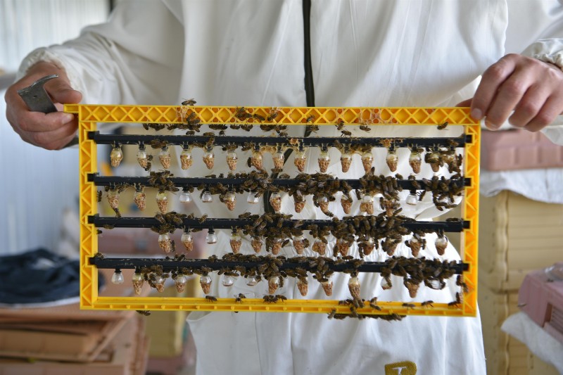 Türkiye’nin en büyük Bal Ormanı’nı Balıkesir’e kurma işlemlerini aralıksız sürdüren Büyükşehir Belediyesi, Ana Arı Üretim Merkezi’nde yetiştirdiği 20 binin üzerindeki kraliçe arıyı üreticilerle buluşturdu. Bunun yanı sıra; ahşap kovan, kovan altlığı ve arı yemi desteklerini de sürdüren Büyükşehir, Balıkesir Balını tanıtma faaliyetlerine de devam ediyor. (Balıkesir Büyükşehir Belediyesi)