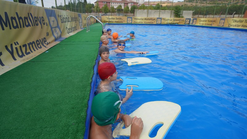 Büyükşehir Belediyesi ile Gençlik ve Spor İl Müdürlüğü iş birliğinde ilçelerde faaliyete alınan havuzlarda çocuklar; hem en iyi şekilde yüzme öğreniyor hem de doyasıya eğleniyor.