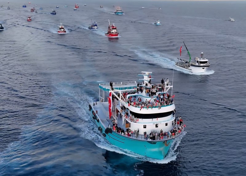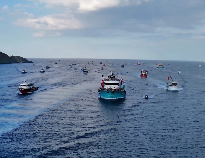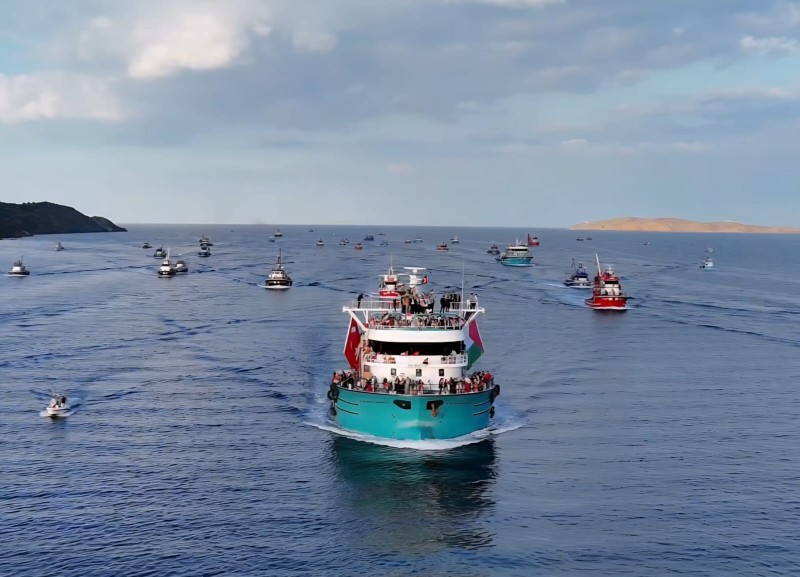Konuşmaların ardından, Filistin ve Küresel Sumud Filosu’na destek olmak, İsrail’in saldırılarını protesto etmek amacıyla tekneler Marmara Denizi’ne açıldı.