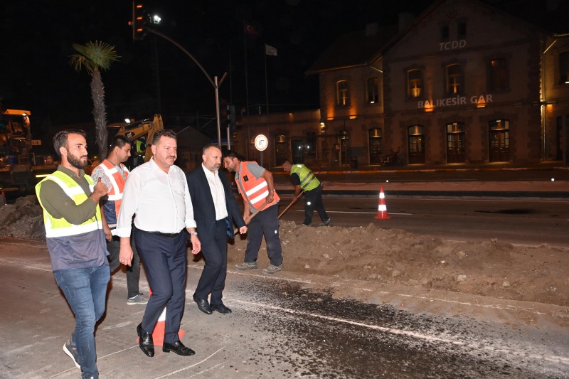 Balıkesir Büyükşehir Belediyesi, Vasıf Çınar Caddesi, Tren Garı önünde deforme olan yolda trimer kazısı ve sıcak asfalt serimi çalışmalarını başlattı. Yağmur suyu hatlarının da rehabilite edildiği çalışmalar, perşembe gecesine kadar tamamlanacak.