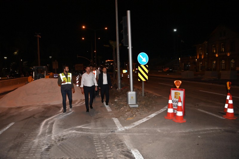 Balıkesir Büyükşehir Belediye Başkanı Yücel Yılmaz gecenin ilerleyen saatlerinde çalışmaları yerinde inceledi. Perşembeyi Cumaya bağlayan gece yolun trafiğe açılacağını belirten Başkan Yılmaz, “Ekiplerimiz Gar Meydanı’nda hummalı bir çalışma yürütüyor. Planladığımız gibi gece boyunca trafiği belirli bir süre kapatıp çalışmalarımızı sürdürüyoruz. Bir yandan asfalt atılmış yere şerit çekilmişken diğer yandan da trimer kazısı ve asfalt yenileme, yağmur suyu hatlarının organizasyonu yapılıyor. Balıkesir’imiz daha güzel olsun diye belediyemiz 24 saat hizmette” dedi. (Balıkesir Büyükşehir Belediyesi)