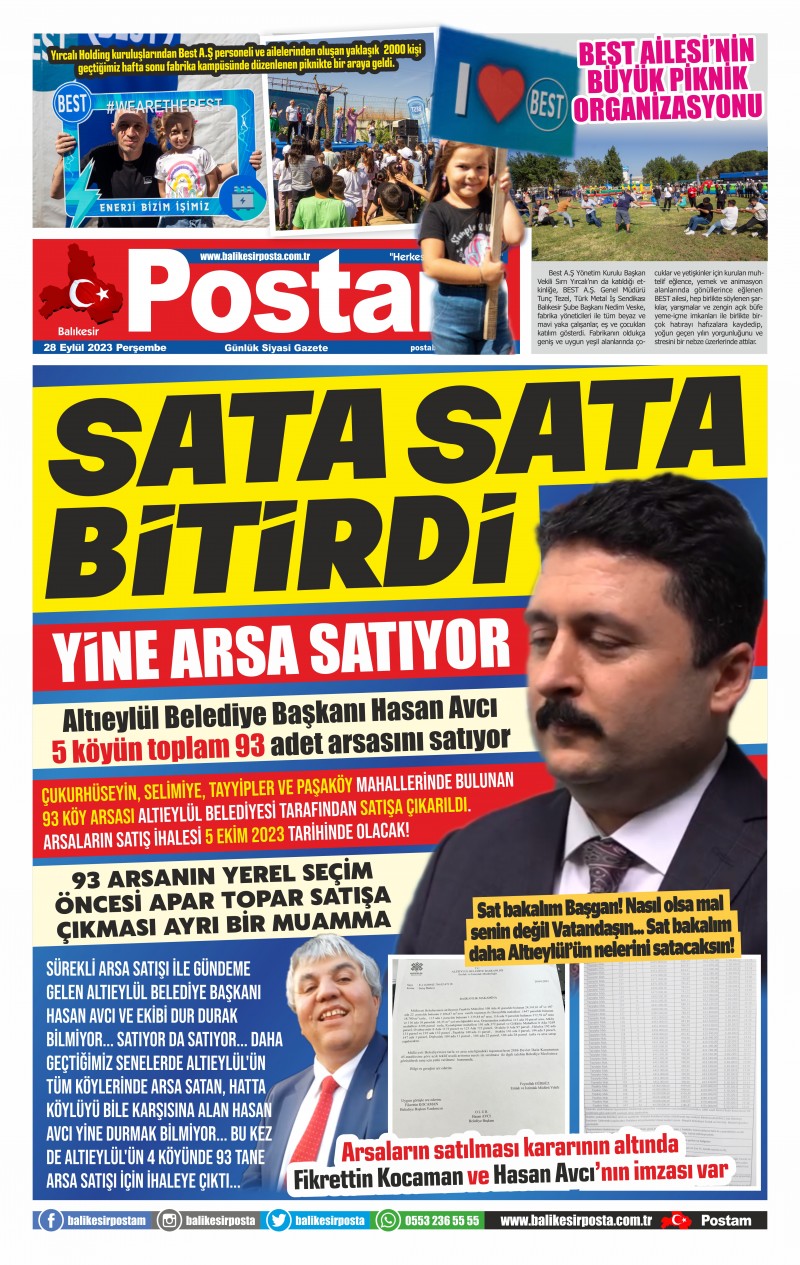 Sürekli arsa satışı ile gündeme gelen Altıeylül Belediye Başkanı Hasan Avcı ve ekibi dur durak bilmiyor... Satıyor da satıyor... Daha geçtiğimiz senelerde Altıeylül'ün tüm köylerinde arsa satan, hatta köylüyü bile karşısına alan Hasan Avcı yine durmak bilmiyor... Bu kez de Altıeylül'ün 4 köyünde 93 tane arsa satışı için ihaleye çıktı... (Haber Merkezi)