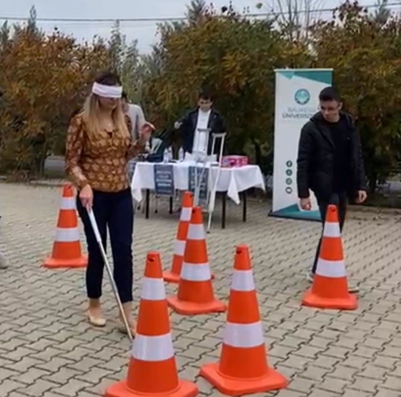 Balıkesir Üniversitesi İvrindi Sağlık Hizmetleri Meslek Yüksekokulu Tıbbi Hizmetler ve Teknikler Bölümü öğrencileri, “Sosyal Sorumluluk Projeleri” dersi kapsamında engelli bireylere yönelik anlamlı bir farkındalık etkinliği gerçekleştirdi. Bölüm öğrencileri; Efekan Altıntaş, Mehmet Baki Özçiloğlu, Buğra Dayır ve Enes Gençdoğan’ın danışmanları Öğr. Gör. Buket Doğan Aktaş rehberliğinde gerçekleştirdiği etkinliğe akademik ve idari personel de katılım gösterdi.