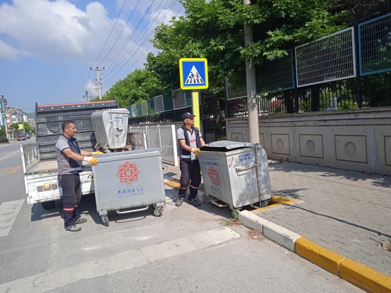 Karesi Belediyesi, vatandaşların güzel bir bayram geçirmeleri için Kurban Bayramı öncesinde ilçe genelinde bakım ve temizlik çalışması yapıyor. Kurban bayramı süresince de özellikle nöbetçi temizlik ekipleri sayısı iki katına çıkarılırken, sıcak su ile çöp konteynırlarını dezenfekte eden araçların sayısı da arttırıldı.