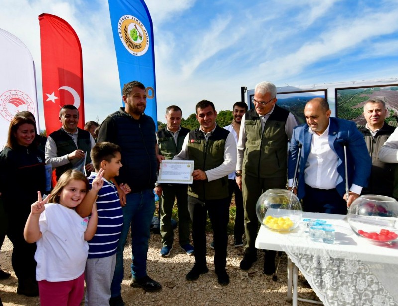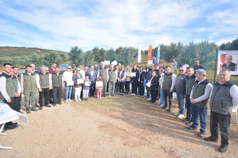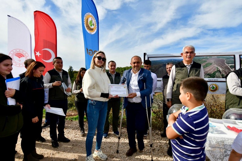 Bölge Müdürü Musa Şen’in eşlik ettiği incelemelerde, Genel Müdür Karacabey Zeytin hasadı yapan yöre halkına eşlik ederek sahada incelemelerde bulundu. Hasadın ardından yöre halkı ile görüşen Genel Müdür, Zeytin GGT Sahasından elde edilen gelirle aile bütçelerine ek gelir sağlanmasından ve ülke ekonomisine katkı sunulmasından duyulan memnuniyeti aktardı; ayrıca yeni sahalar talep edildi. Sohbet sırasında Genel Müdür, Orman Genel Müdürlüğü’nün orman köylüsüne aile bütçesi ve ülke ekonomisine fayda sağlayacak her türlü desteği sağladığını ve sağlamaya devam edeceğini vurguladı, emeklerin boşa çıkmadığını belirterek bereketli ve kazançlı sahaların devamını temenni etti. Genel Müdürün yöre halkı ile görüşmesinin ardından, 2024 yılında saha hazırlığı yapılan 550 dekarlık alana toplam 3.000 adet zeytin fidanı dikimi için Hıdırköy Mahalle Muhtarı Süleyman Dönmez eşliğinde, yöre halkının, Ulusal Basın’ın, Bölge Müdür Yardımcıları Nejdet Güdül, İbrahim Metin ve Halil Karademir’in, Bandırma İşletme Müdürü Hasan Açık’ın ve Ağaçlandırma ve Silvikültür Şube Müdürleri ile İşletme Müdürlüğü teknik personelinin katılımıyla parselizasyon kura çekilişi ve sertifika takdimi gerçekleştirildi. Yeni sahaların sahiplerine hayırlı olması temenni edildi.