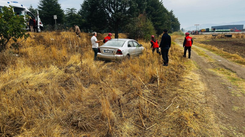 Kepsut yönüne giden otomobil yağıştan dolayı kayarak, şarampole uçtu.