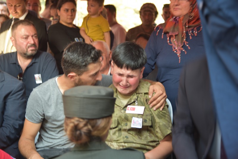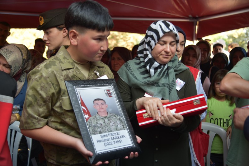 Mahalle meydanına gözyaşları ile karşılanan şehidin Türk bayrağına sarılı tabutu, askeri törenle taşındı. Şehidin cenazesinin getirilişi sırasında yakınları gözyaşı döktü, yakınlarını Aile ve Sosyal Hizmetler Bakanlığı psikososyal destek ekipleri teselli etti.