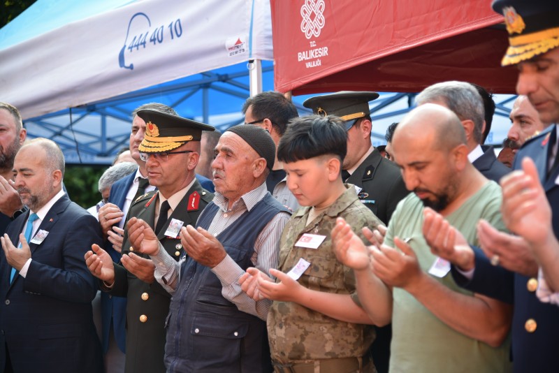 Şehidin 15 yaşındaki kardeşi Resul Sarıkaya, ağabeyinin üniformasıyla törene katıldı. Cenaze törenine, şehidin babası Rıza, annesi Gülsüm Sarıkaya, ailesi ve yakınlarının yanı sıra Balıkesir Valisi Hasan Şıldak, AK Parti Genel Başkan Yardımcısı Belgin Uygur, 9. Ana Jet Üssü ve Garnizon Komutanı Tuğgeneral Cihangir Kemal Yüzçelik, Balıkesir Cumhuriyet Başsavcısı Abdulkadir Akın, Balıkesir Büyükşehir Belediye Başkan Vekili Mehmet Birol Şahin, Sındırgı Belediye Başkanı Ekrem Yavaş, Sındırgı Kaymakamı Zafer Oktay, ilçe kaymakamları, ilçe belediye başkanları ve bazı siyasi parti temsilcileri katıldı.