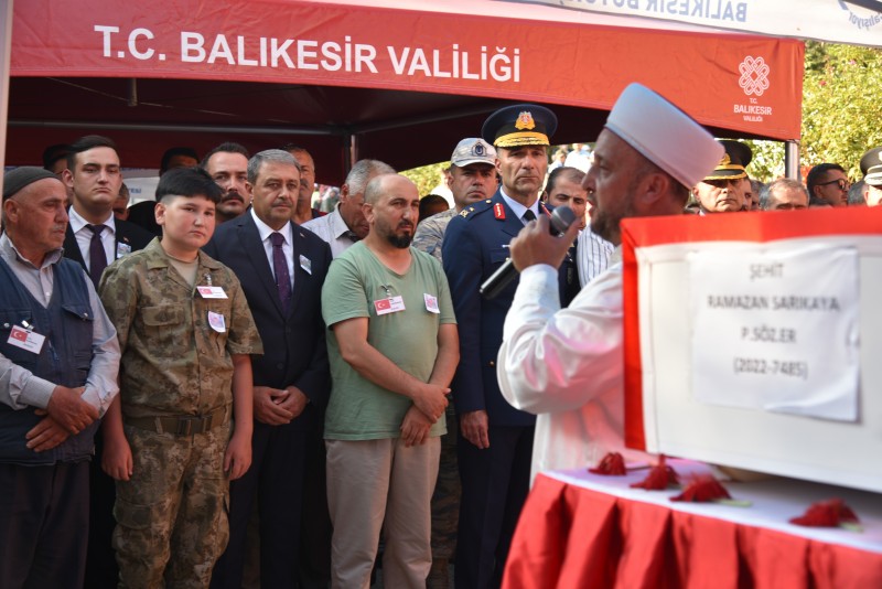 Van'ın Gürpınar ilçesinde meydana gelen trafik kazasında şehit olan Piyade Sözleşmeli Er Ramazan Sarıkaya (22) memleketi Balıkesir'in Sındırgı ilçesinde toprağa verildi.