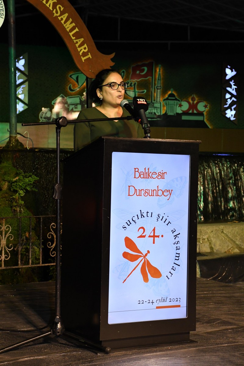 Güzeller güzeli Dursunbey Suçıktı Mesire Alanı’nda bu yıl 24. Şiir Akşamları etkinliğinde birbirinden değerli şairleri ağırlamaktan mutluluk duyduklarını ifade eden Dursunbey Belediye Başkan Vekili Mustafa Sali “Yeşilin eşsiz tonuyla şiiri buluşturduğumuz, şiir akşamlarının bu yıl 24.’sünü düzenliyoruz. 30 yıl önce birkaç üstat şairin girişimleriyle başlayan ve yaklaşık çeyrek asırdır devam eden şiir akşamlarının bu yıl da gerçekleştiriyor olmanın gururunu yaşıyoruz. Şiir Akşamlarının düzenlenmesinde emeği geçen Balıkesir Büyükşehir Belediye Başkanımız Yücel Yılmaz’a, Dursunbey Belediye Başkanımız Ramazan Bahçavan’a, Ahmet Kot’a ve değerli şairlerimize çok teşekkür ederim.” diye konuştu.