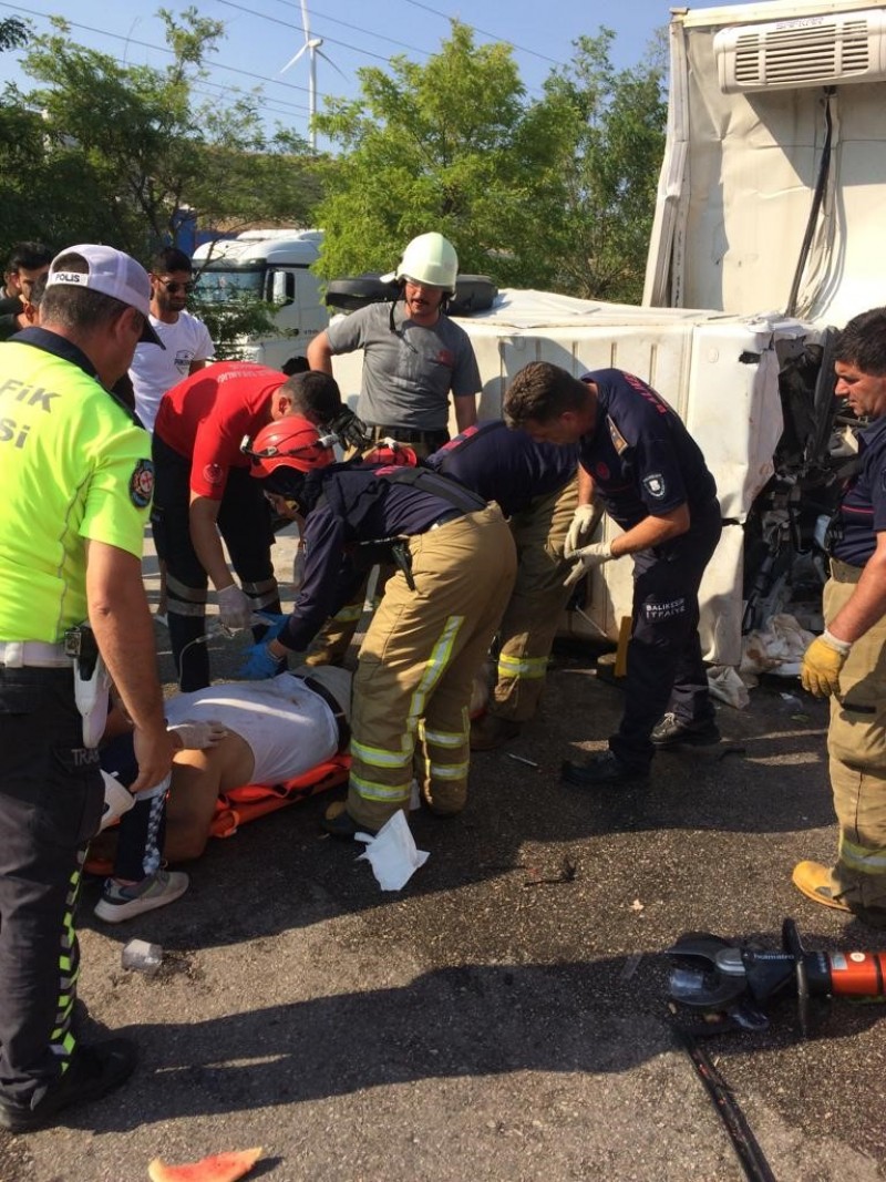 Kaza, Gönen-Bandırma karayolu Edincik kavşağında meydana geldi. Ali K. idaresindeki 42 EKD 68 plakalı karpuz yüklü kamyona, 16 ER 601 plakalı Hikmet Deniz (51) yönetimindeki kamyon arkadan çarptı. Araçta sıkışın sürücü Hikmet Deniz, itfaiye ekipleri tarafından sıkıştığı yerden kurtarılarak ambulansla Bandırma Eğitim ve Araştırma Hastanesine kaldırıldı. Deniz, yapılan tüm müdahalelere rağmen kurtarılamadı. Hikmet Deniz'in cenazesi kesin ölüm nedeninin belirlenmesi için Bursa Adli Tıp Kurumu morguna gönderildi. (İHA)