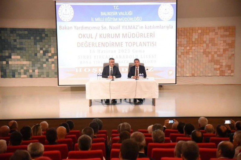 Milli Eğitim Bakan Yardımcısı Nazif Yılmaz, Balıkesir İl Milli Eğitim Müdürü Ali Tatlı eşliğinde, ilçe milli eğitim müdürleri, şube müdürleri, Altıeylül ve Karesi ilçelerinde görev yapan okul ve kurum yöneticileri ile Sırrı Yırcalı Anadolu Lisesinde yapılan Değerlendirme Toplantısı'na katıldı.
